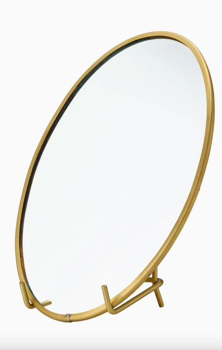 A simple yet timeless design, featuring an antique-finished brass frame mirror. Easy hanging on hooks.